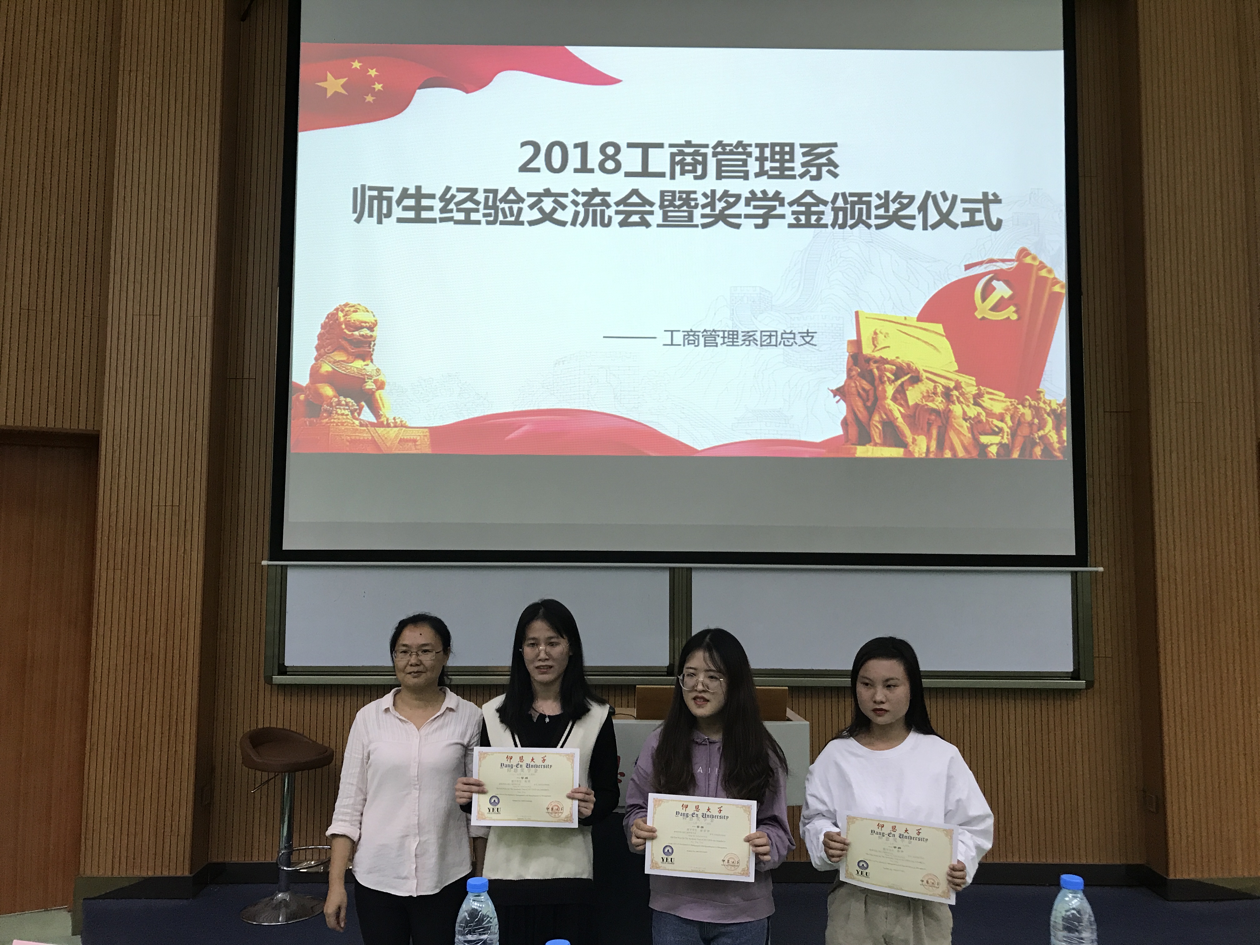学习经验交流 会上,工商管理系代理主任蒋志丹首先上台致辞,她简要介绍了工商管理系的专业、课程和团队力量建设,以及近年来工商管理专业所取得的成绩。随后进行颁奖仪式,为在2017-2018学年中表现优异荣获吴庆星奖学金、仰恩奖学金以及泉州农行助学奖学金的同学颁发荣誉证书。学习经验交流中,李秀芳、张海莲、傅欣怡、林威、杨娇、颜静等6位奖学金获得者纷纷上台分享经验与感悟,为2018级新生解疑答惑。几位同学就学习、竞赛、工作和社团等方面谈了自身的感受,总结出贵在端正“坚持”、“自省”以及“勤勉”的学习态度,生动诠释了老员工自我管理的重要性。