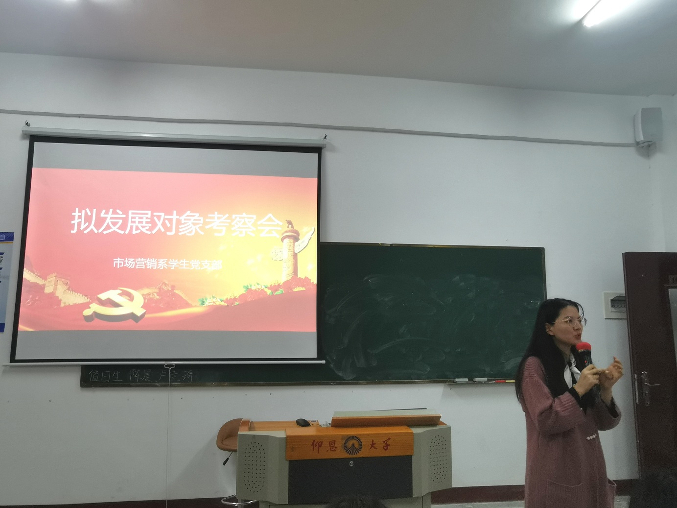 为了加强对入党积极分子的教育工作,提高入党积极分子个人素养,11月16日晚,市场营销系员工党支部于祥贤楼105教室开展拟发展对象答辩会。讨论会由张雪文主持,其参与答辩会的成员有支委连景霞老师、罗秀萍、黄惠娥,洪晓徽老师以及46期入党积极分子。